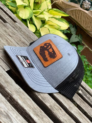 These leather patch Richardson 112 hats are a great way to flaunt your style and look sleek at the same time. Patches made from 100% leather and engraved with a crisp design and hand stitched on our most popular style of hat. Your friends are going to be jealous!