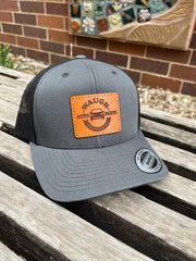These leather patch Yupoong 6606 hats are a great way to flaunt your style and look sleek at the same time. Patches made from 100% leather and engraved with a crisp design and hand stitched on our most popular style of hat. Your friends are going to be jealous!