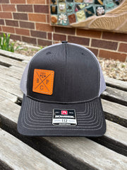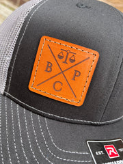 These leather patch Richardson 112 hats are a great way to flaunt your style and look sleek at the same time. Patches made from 100% leather and engraved with a crisp design, "Faux" Laser Stitched and riveted on our most popular style of hat. Your friends are going to be jealous!
