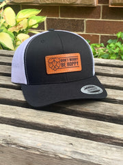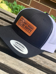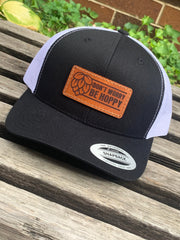 Don't Worry, Be Hoppy Yupoong 6606 Laser Engraved Leather Patch Hat-Beer Craft Beer home brewing hops barley Hand Stitched Real Leather
