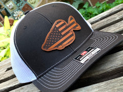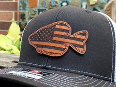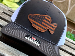 Richardson 112 Laser Engraved Leather Patch Hat- Crappie American Flag State Silhouette With USA Flag Real Leather Fish Angler Gone Fishin