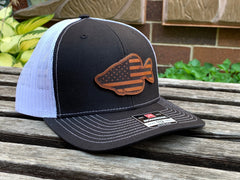 These leather patch Richardson 112 hats are a great way to flaunt your style and look sleek at the same time. Patches made from 100% leather and engraved with a crisp design and hand stitched on our most popular style of hat. Your friends are going to be jealous!