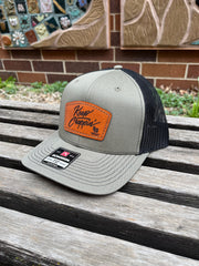 These leather patch Richardson 112 hats are a great way to flaunt your style and look sleek at the same time. Patches made from 100% leather and engraved with a crisp design and hand stitched on our most popular style of hat. Your friends are going to be jealous!