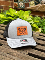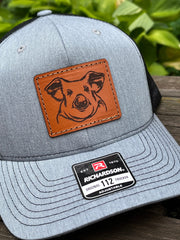 Richardson 112 Laser Engraved Leather Patch Hat- Peeking Pig Hog Show pig Hand Stitched Real Leather