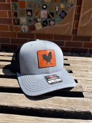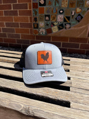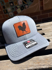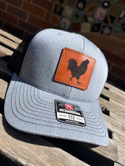Richardson 112 Laser Engraved Leather Patch Hat- Rooster Chicken Hand Stitched Real Leather