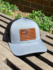 Richardson 112 Laser Engraved Leather Patch Hat- Show Lamb American Flag Sheep Hand Stitched Real Leather