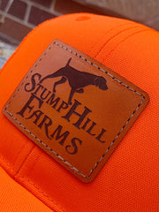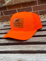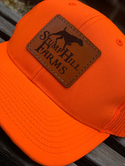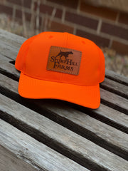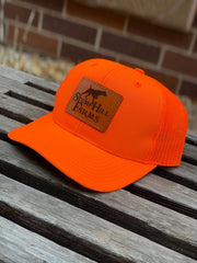 Richardson 882 Laser Engraved Leather Patch Hat- Custom company logo or brand Blaze Orange Hunting Hat Hunter Bird Hunter Pheasant Hunting