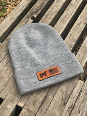 These leather patch Richardson R18 Stocking hats are a great way to flaunt your style and look sleek at the same time. Patches made from 100% leather and engraved with a crisp design and hand stitched on our most popular style of hat. Your friends are going to be jealous!