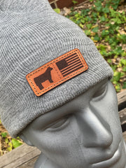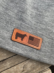 Richardson R18 Laser Engraved Leather Patch Stocking Hat Beanie- Show Steer Cow American Flag Hand Stitched Real Leather Cold Weather Winter
