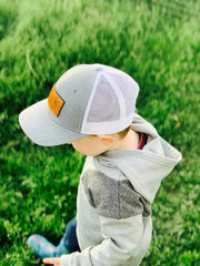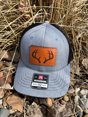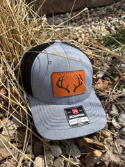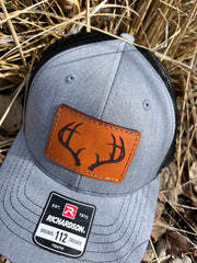 YOUTH/TODDLER Richardson 112 Laser Engraved Leather Patch Hat- Deer Antler Hunting Big Rack Hand Stitched Real Leather