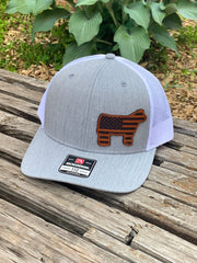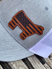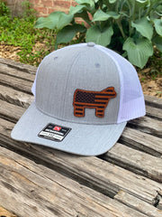 YOUTH/TODDLER Richardson 112 Laser Engraved Leather Patch Hat- Show Steer American Flag Cow Calf "Faux" Stitched Die Cut Authentic Leather