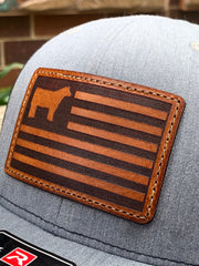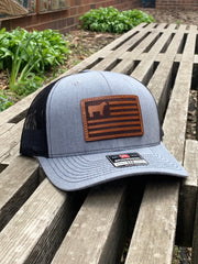 YOUTH/TODDLER Richardson 112 Laser Engraved Leather Patch Hat- Show Steer American Flag Cow Calf Hand Stitched Real Leather