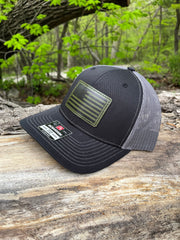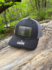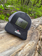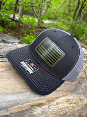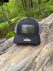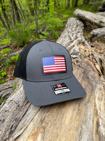 American Flag Richardson 112 Digitally Printed Leather Patch Hat- American Flag Patriotic Military Hand Stitched Real Leather