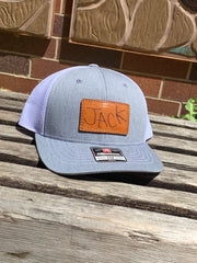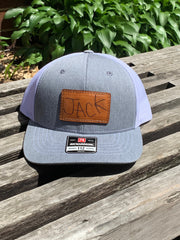 How cool are these custom Handwritten leather patch hats, hand sewn patch on the new Youth Richardson 112 Heather gray and white mesh Trucker hat. We strive to make all the kids on the playground jealous of this one-of-a-kind hat for your child, and a bonus perk you'll never lose your kid again!!