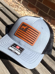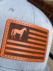 Richardson 112 Laser Engraved Leather Patch Hat- Horse American Flag Hand Stitched Real Leather Show Animal Ranch Flag Patriotic