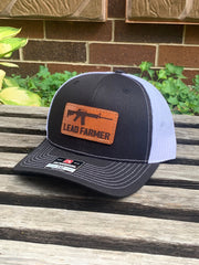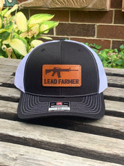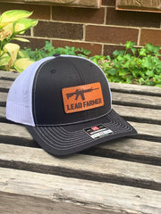 Richardson 112 Laser Engraved Leather Patch Hat- Lead Farmer AR American Flag 2nd Amendment Military Rifle Patriotic Hand Stitched USA