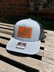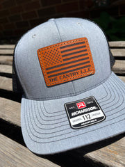 Richardson 112 Laser Engraved Leather Patch Hat- Personalized American Flag Hand Stitched Real Leather USA patriotic Military